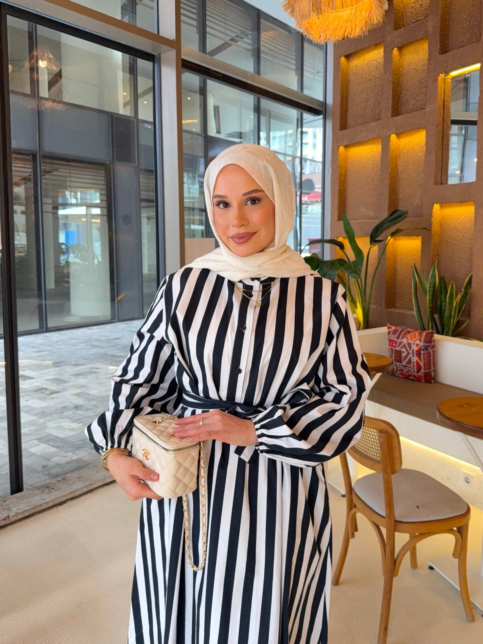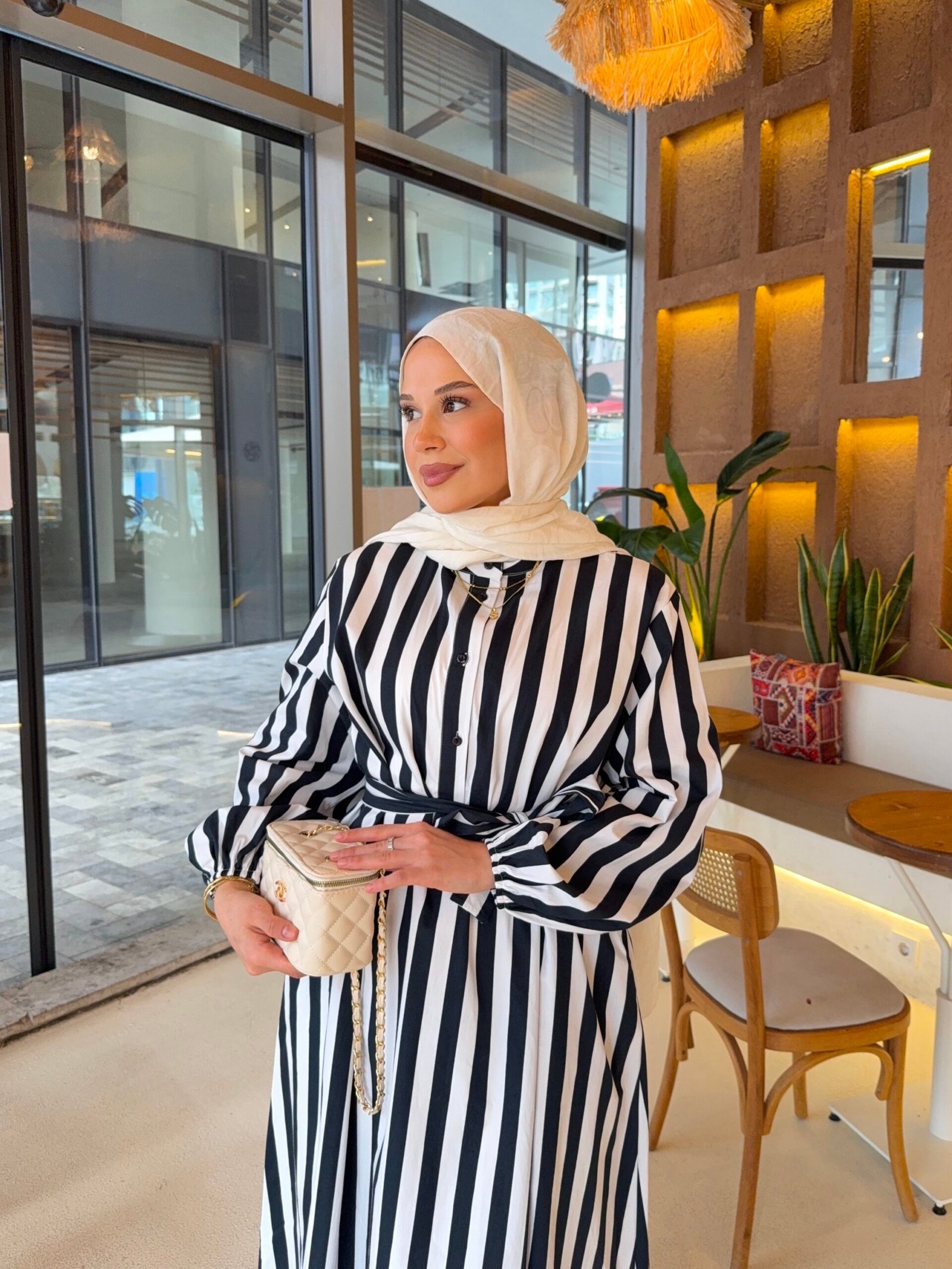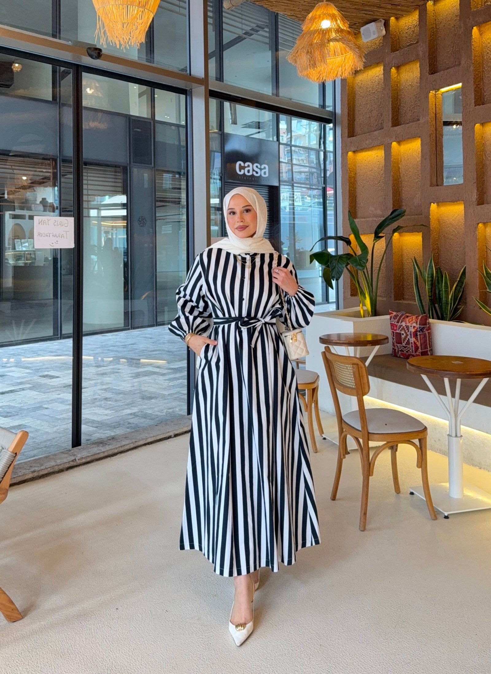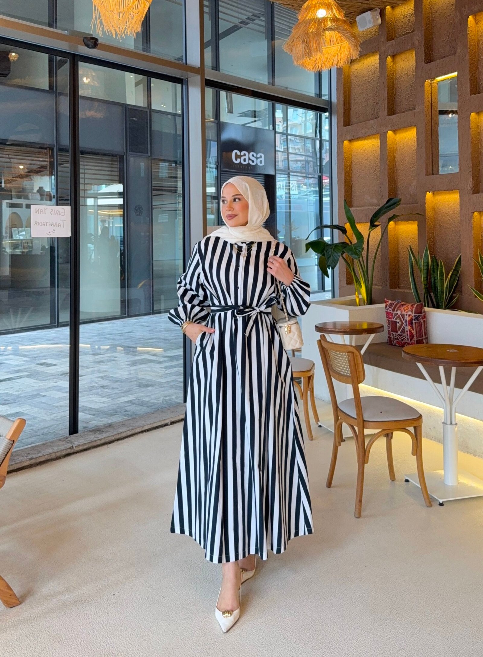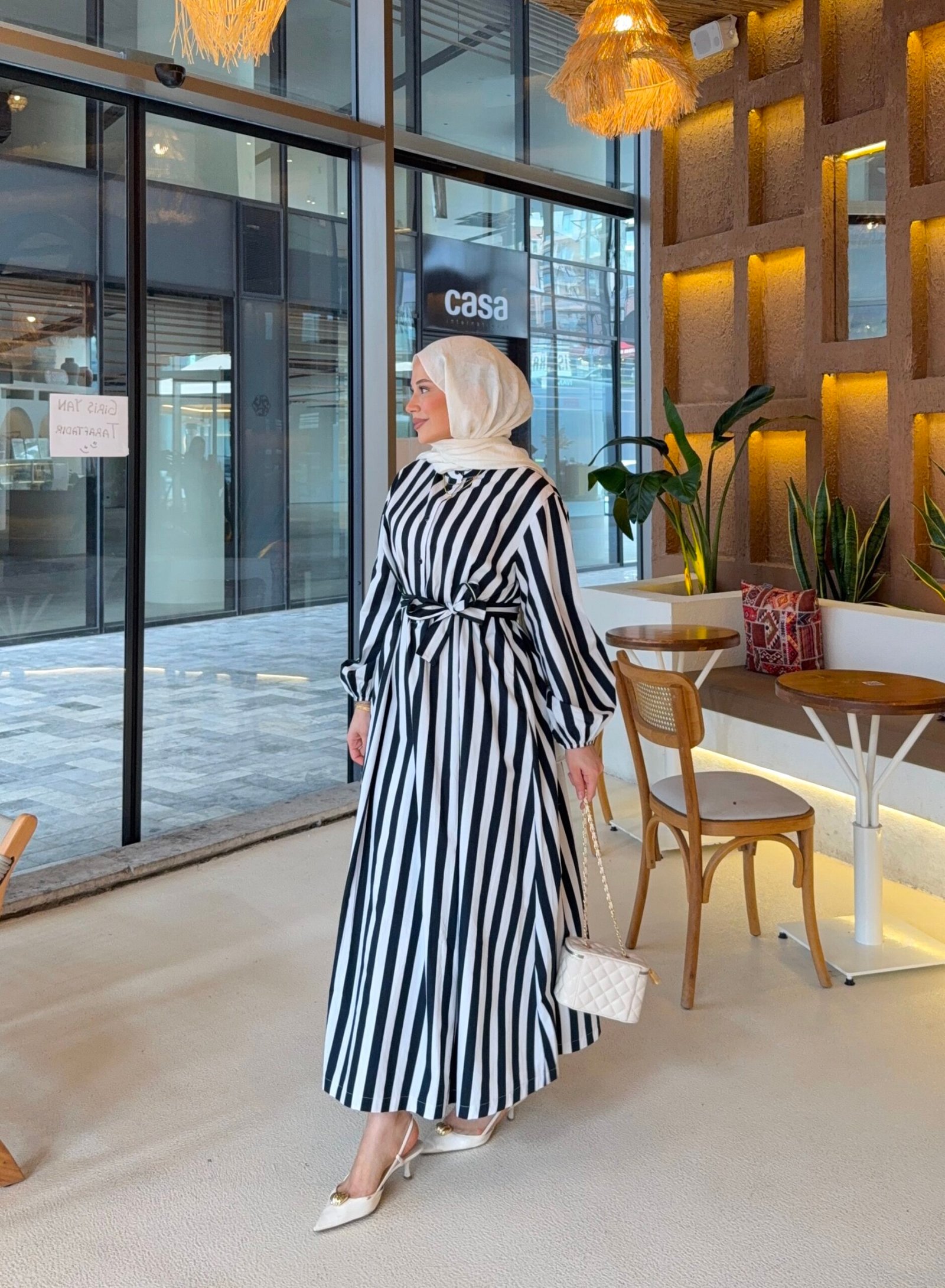 Çizgili siyah poplin kumaş lara elbse